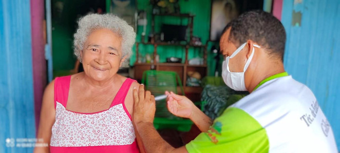 O Prefeito Naudo Ribeiro e o Secretário municipal de Saúde, Oscar Sérgio, estiveram, nesta manhã de segunda-feira, 1º de março, acompanhando a Campanha de Vacinação contra a covid-19 em Jordão. Nesta fase, a equipe da prefeitura está imunizando o público idoso, da melhor idade.